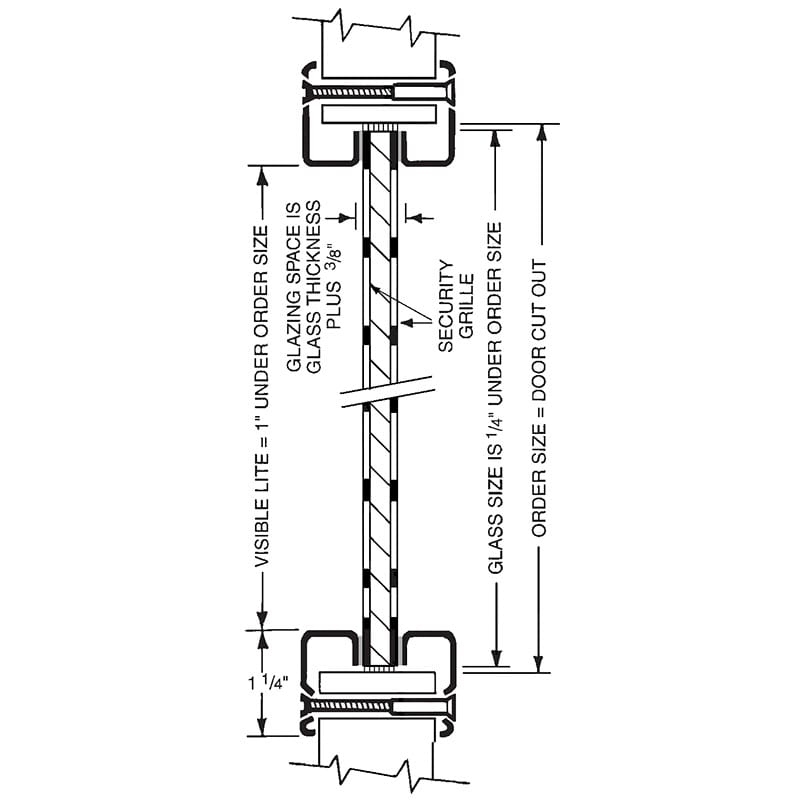 Security vision lite frame with 12-gauge security grille for 3/16″ to 1/4″ glass, for 1-3/4″ thick doors