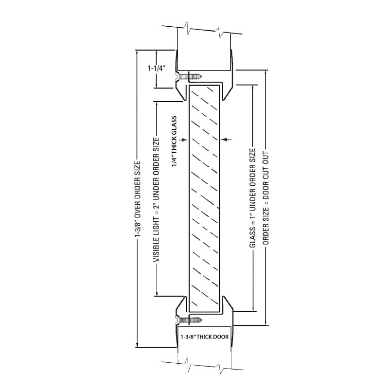 VSIG Slimline steel vision lite frame for 1/4″ thick glass, for 1-3/8″ thick doors