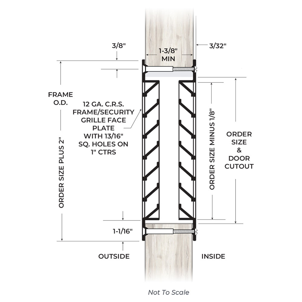 - 12 Ga. Cold Rolled Steel Security Grille Frame With 13/16″ Square Holes on 1″ Centers