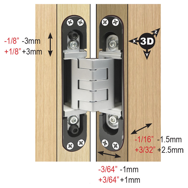 3D Adjustable Concealed Hinge for use with Wood and Hollow Metal Doors