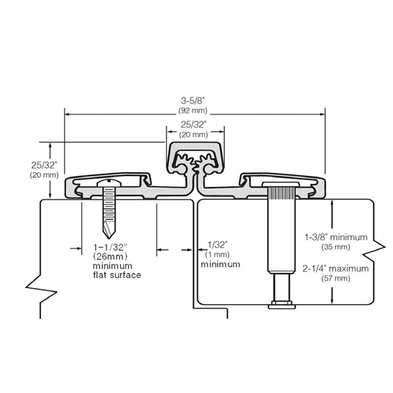 CRHD780570 is an Aluminum Continuous Geared Full Surface Hinge. It can be used with any standard frame without hinge preps, and either with or without reinforcements depending on door weight. The frame face must have a flat surface at least 1-1/32” wide. Clearance between the hinge edge of the door and the frame rabbet is 1/32” (1mm). “HD” models have additional bearings and frame fasteners for heavy-duty applications.
