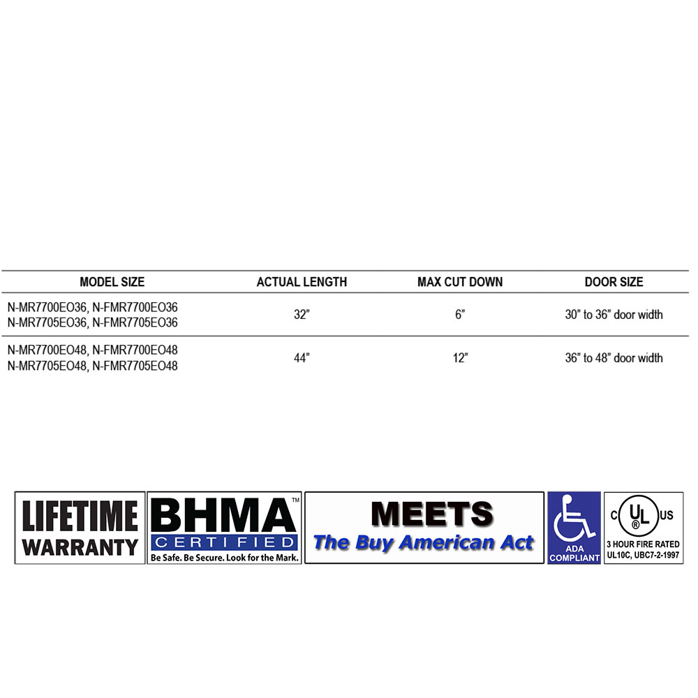 | Fire Rating | N-MR7700: Non-Fire-Rated – N-FMR7700: 3 Hour Fire-Rated |
