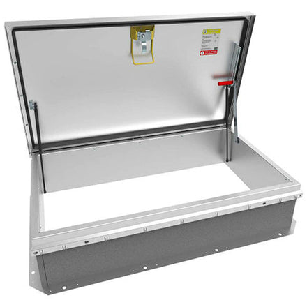 Zinc plated steel automatic hold open arm locks cover in open position |