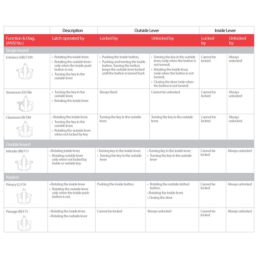Visual Lockdown Indicator - Easy-to-understand marking on classroom side of lock shows which way to turn the key to lock the door from the inside of the classroom.
