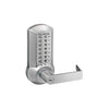 Operated by lever from outside and when push pad is depressed, except outside has to enter a pre-programmed code on the keypad in order to retract the latch upon turning the lever.