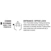 ANSI Function F109 - Turn/Push button locking. Pushing and turning button locks outside lever requiring use of key until button is manually unlocked. Pushing button locks outside lever until unlocked with key or inside lever is turned.