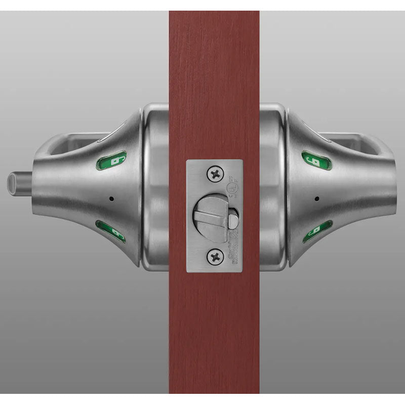 The CLX3300 Series cylindrical lock with status indicators, is the ultimate intersection of security and privacy. Engineered for easy installation in any space, it ensures instant visibility of the door's lock status. Featuring status indicator windows for optimal visibility. Built on the robust CLX3300 Series lock body, it exceeds Grade 1 standards, making it ideal for high-traffic restrooms, classrooms, or rooms requiring increased privacy.