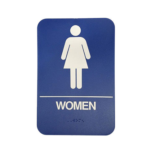 Don Jo HS-9070-04 ADA Women's Restroom Sign, Blue with Braille, 6" x 9"