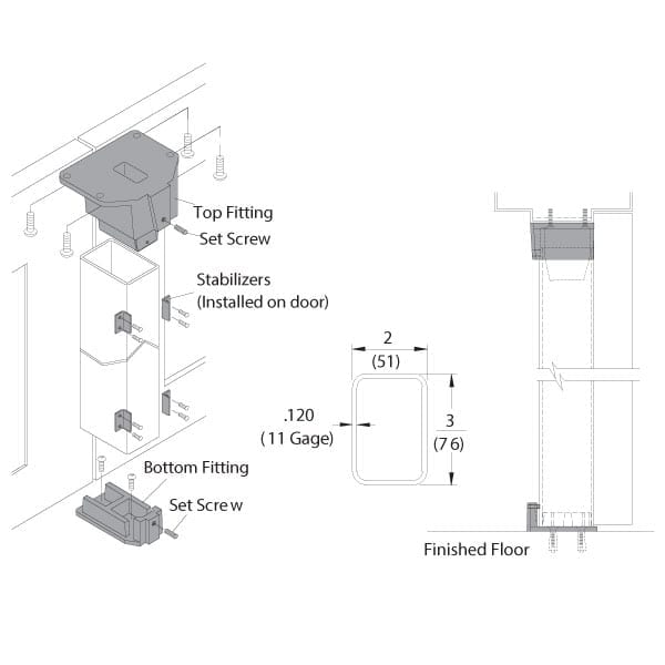 Steel Mullion for Use with DORMA Fire-Rated Rim Exit Devices