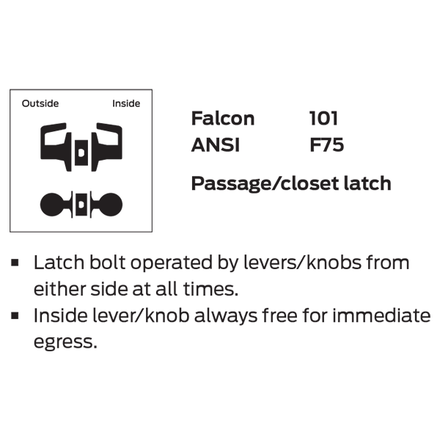 ANSI Function F75 - Keyless - Latch bolt by knob at all times.