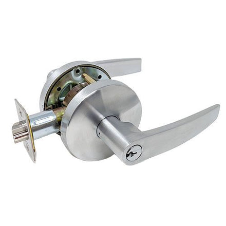 ANSI Function F84 – Deadlocking latch bolt by levers. Outside lever is locked by key in outside lever. Inside lever is always free.
