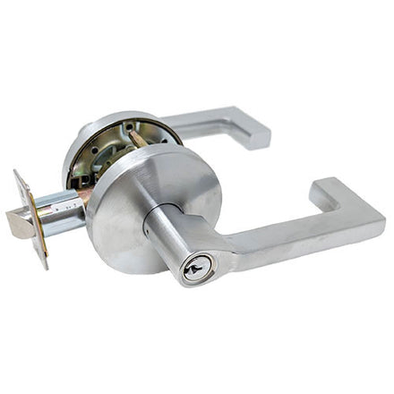 ANSI Function F84 – Deadlocking latch bolt by levers. Outside lever is locked by key in outside lever. Inside lever is always free.