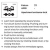 Falcon W711P6D Grade 2 Apartment Entrance Cylindrical Lock, Key in Lever Cylinder, Dane Lever, Standard Rose