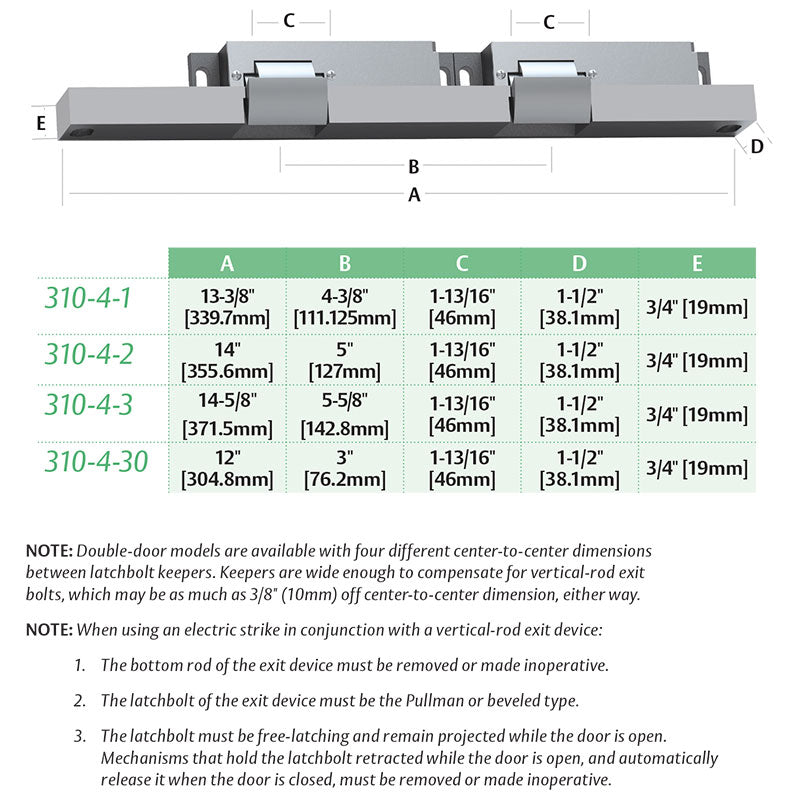 - 310-4-1 For both leaves of a pair of doors when spacing of the vertical rod is between 4" [101.6mm] and 4-3/4" [120.65mm] PK keeper standard