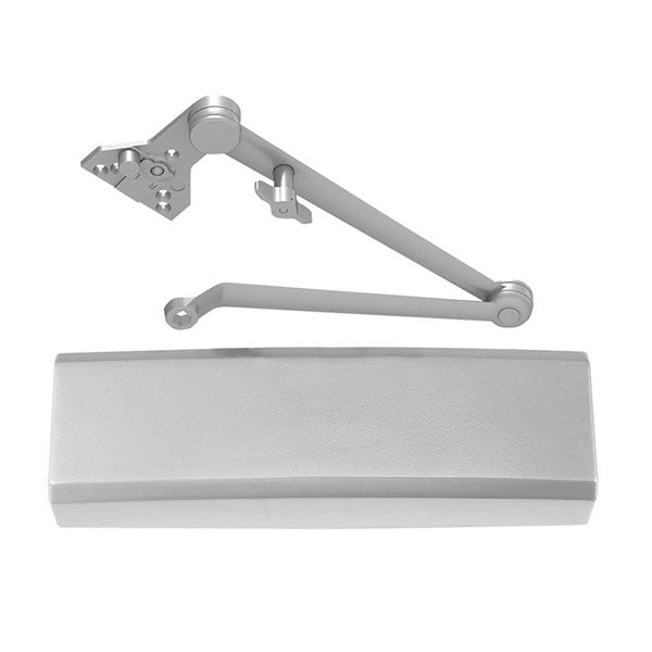 This cast aluminum door closer offers premium features like powder coating, a full complement bearing, All-Weather Fluid, and a 25-year warranty.