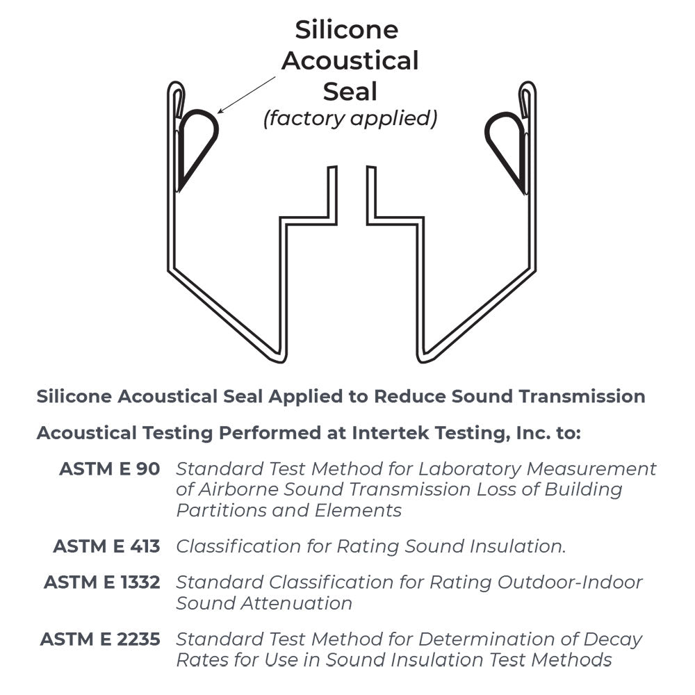 ACOUSTICAL TESTED to ASTM E90 Standard Test Method for Laboratory Measurement of Airborne Sound Transmission Loss of Building Partitions and Elements, and ASTM E2235 Standard Test Method for Determination of Decay Rates for use in Sound Insulation Test Methods. Refer to information on pages G8 thru G10 of the NGP Gasketing catalog for test result data.