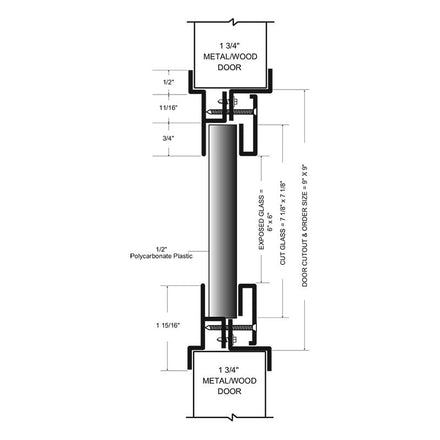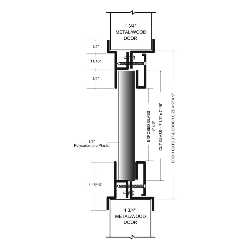 9" x 9" Security lite kit with high impact polycarbonate glazing for 1-3/4" thick doors