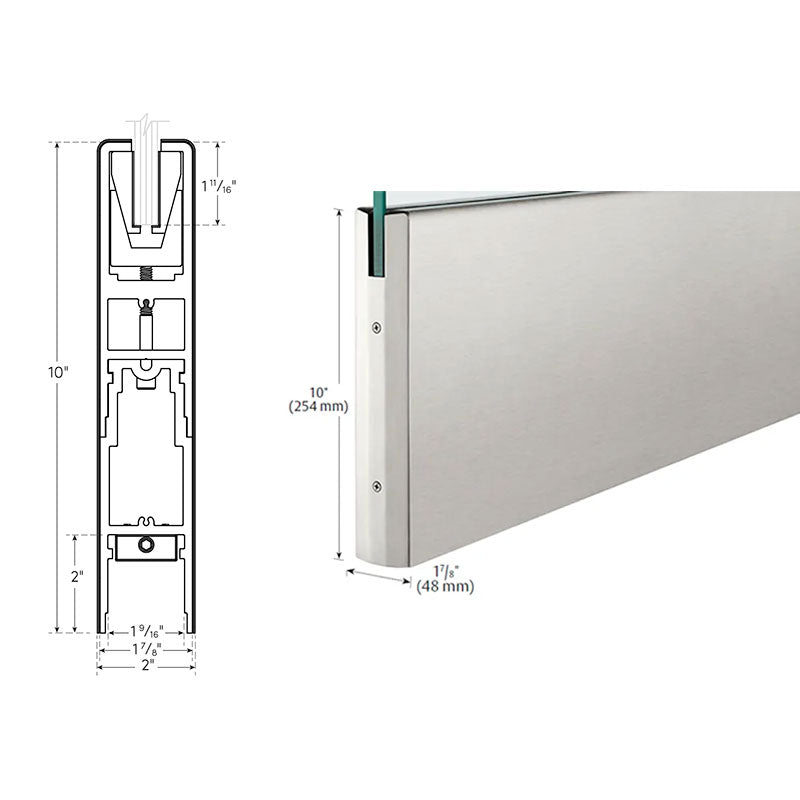 The square 10" mechanical glass door rail offers maximum protection to your glass door and meets ADA requirements. Its one-piece compression system is pre-assembled and has dry glaze feature for easy installation.