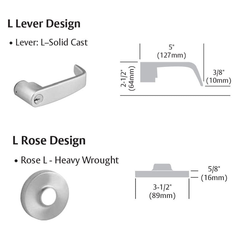 - Emergency button in outside lever unlocks with use of a blade screwdriver in outside lever and releases inside button