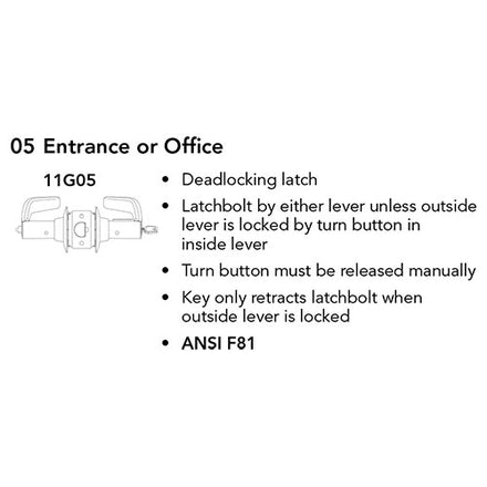 28-11G05-LL T-Zone Entrance or Office Lever Lockset