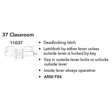 Sargent 28-70-11G37-LL Grade-1 T-Zone Bored Lock, Classroom Function, L Lever, L Rose, SFIC Prep, Less Core