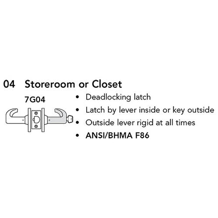 Sargent 28-7G04 Grade-2 Cylindrical Lock, Storeroom or Closet Function, B Lever, L Rose