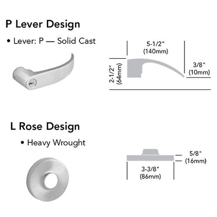Sargent 28-7G04 Grade-2 Cylindrical Lock, Storeroom or Closet Function, P Lever, L Rose