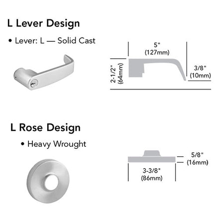 Sargent 28-7G05 Grade-2 Cylindrical Lock, Entrance or Office Function, L Lever, L Rose