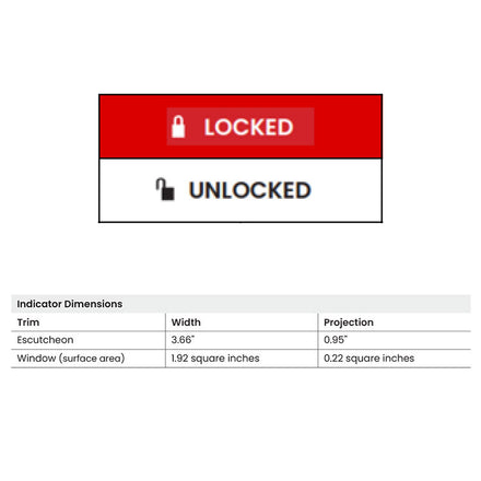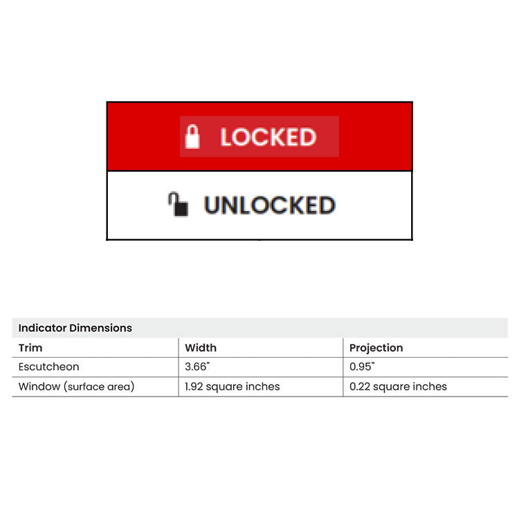 - Indicator window size is unmatched in the market using an escutcheon style trim to allow the message to run the full width of the lock at a height of .6” for maximum visibility