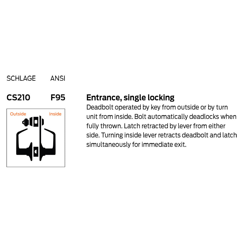 The CS210 interconnected lock provides exceptional performance, aesthetics, and flexibility for both residential and commercial applications. The CS210 features single motion egress (retracting both the latch and deadbolt simply by rotating the inside lever) to meet Life and Safety code requirements, while exceeding BHMA Grade 2 requirements for operational usage, security, cycle and finish. The adjustable escutcheon allows each lock to easily support either 4" or 5-1/2" door preps, eliminating any job-site surprises.