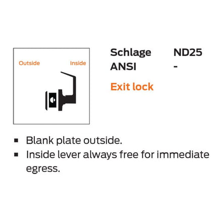 Schlage ND25D SPA Grade-1 Cylindrical Lever Lock, Exit Function, Sparta Lever