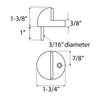 1-3/8" height x 1-3/4" diameter x 3/8" thick Base