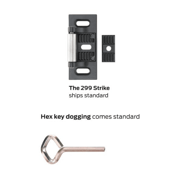 299 roller strike standard, 299F strike with fire-rated device |