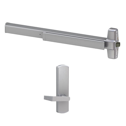 High-performance, wide stile rim exit device with heavy-duty lever trim for high use and abuse applications