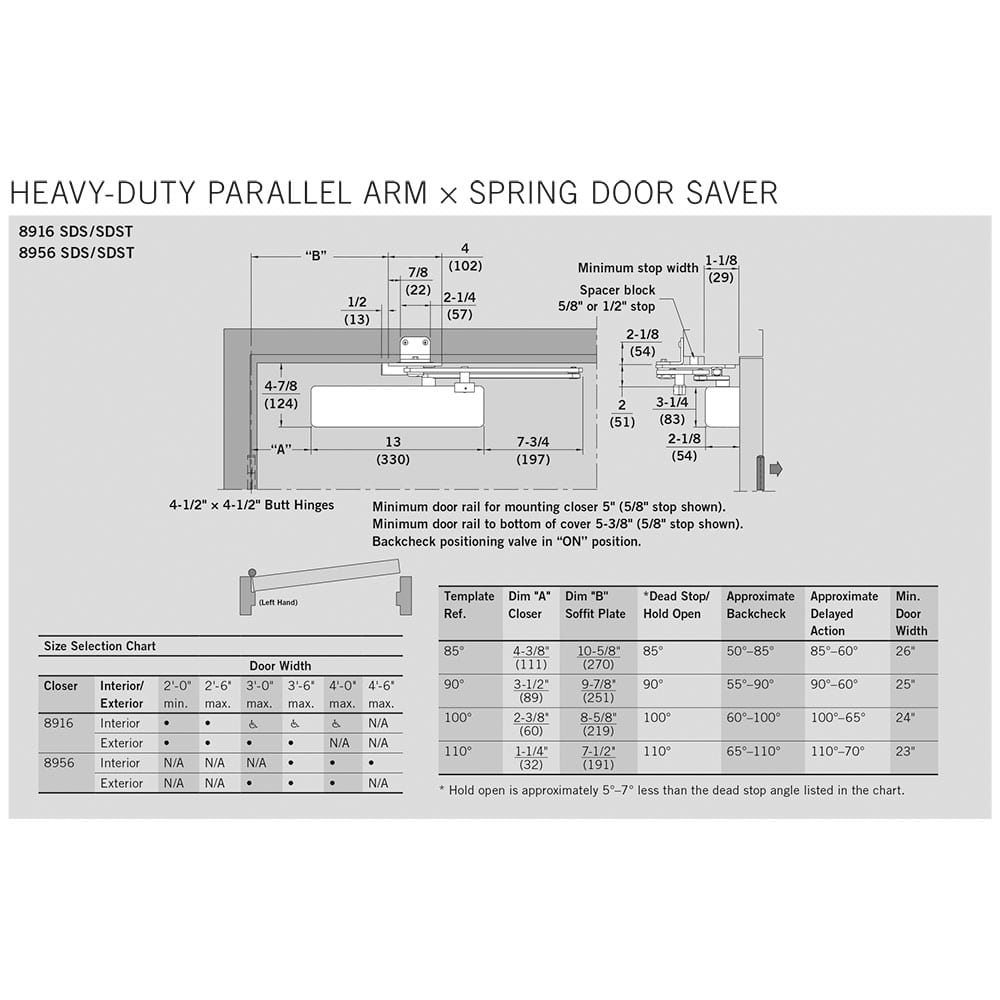 Dormakaba 8916 SDS Door Closer with Heavy Duty Parallel Spring Stop Door Saver Arm