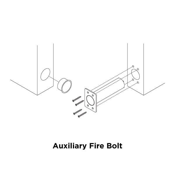 LBR (Less Bottom Rod) devices use a spring-loaded auxiliary latch bolt installed in the lower door edge. When exposed to heat the auxiliary latch bolt releases, keeping the doors in alignment and closed during a fire. UL listed 3 hours on hollow metal doors double egress, 90-minute swinging same direction, and 20-minute wood doors (consult wood door manufacturer). Fits door stiles as narrow as 3-1/2.