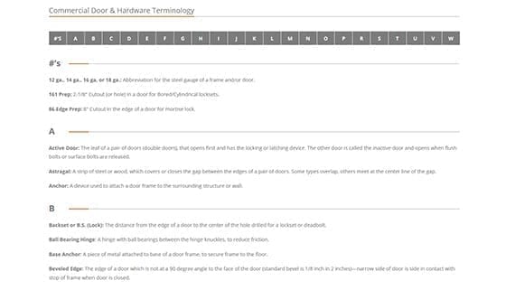 Place Door Order / Submit Payment How to Order Doors My Account Frequently Asked Questions Visit our FAQ page for answers to common questions. Contact Us Shipping Info Return and Warranty Policies Track Hardware Orders Learning Resources Installation Instructions Measuring Charts & Worksheets Frame Rough Opening Chart Door Handing Chart Hardware Finish Charts Door Closer Hole Pattern Chart Door Lock Guide Door & Hardware Terminology ADA Accessibility Guidelines Understanding Codes Training Videos