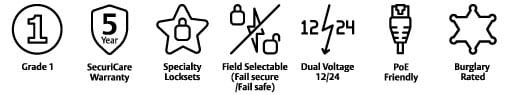 The 5200C has in-frame horizontal adjustability for easy installation. The 5200C works with cylindrical locksets up to a 3/4″ throw latchbolt and includes in-frame adjustability and dual voltage.