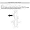 ANSI F13 – Dormitory/Exit – Latchbolt retracted by lever either side. Deadbolt operated by key outside and thumbturn inside. When the deadbolt is projected, outside lever is automatically locked. Anti-panic operation. Operating inside lever retracts the latchbolt and deadbolt simultaneously, automatically unlocking outside lever.