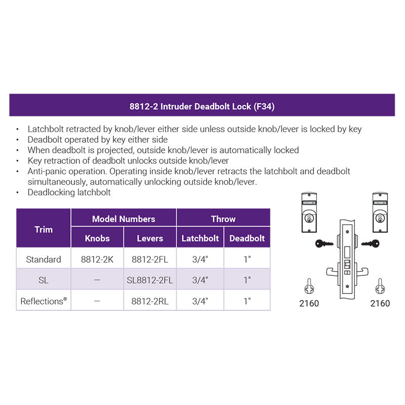 - Anti-panic operation. Operating inside knob/lever retracts the latchbolt and deadbolt simultaneously, automatically unlocking outside knob/lever.