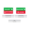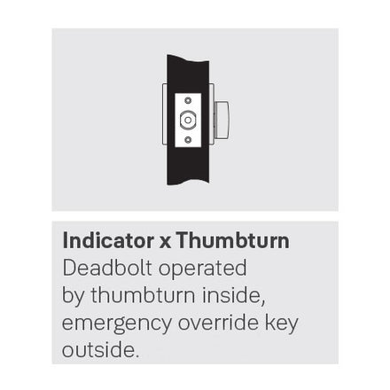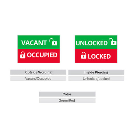 Occupancy Indicator x Thumbturn: Deadbolt operated by thumbturn inside, emergency override key outside. Outside indicator displays "In Use" when deadbolt thrown or "Vacant" when deadbolt retracted.