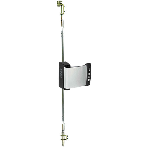 Inside: Push paddle to unblock top bolt and withdraw bottom bolt. Continuing to push will open the door in a very natural, ergonomically-friendly motion. Paddle stroke is approximately 1-1/2" [38.1 mm] at extreme end. Rod adjustment allows paddle (centerline) to be mounted at any height from 30 to 44 inches above the finished floor.