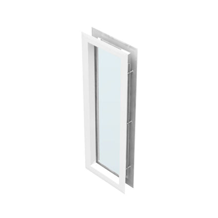 The low profile Slimline™ vision lite mounts flush to the door providing a clean, aesthetic look. The Slimline was designed to avoid interference with other door hardware such as panic bars, and has a self-attaching frame with fasteners on one side for easy installation.