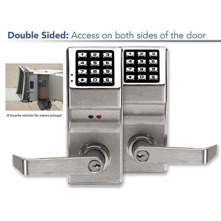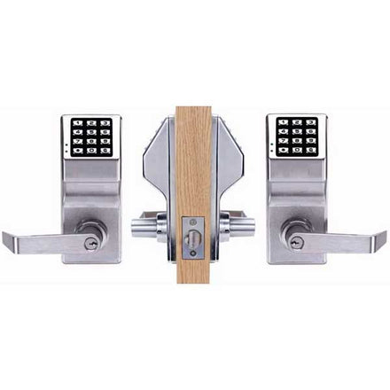 Alarm Lock DL5300 Pushbutton Cylindrical Door Lock, Double Sided, 2000 Users, 40,000 Event Audit Trail, Weatherproof, Straight Lever, Satin Chrome