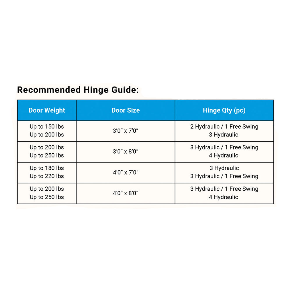 The ALREX PRO Free Swing Hinge is compatible with the ALREX PRO Hydraulic Door Closer Hinge. The free swing is used in tandem with the PRO, adding weight bearing durability without additional closing force. Built for demanding environments, its stainless-steel design ensures smooth, code-compliant performance—now with UL 10C 3-hour fire-rated certification for commercial use.