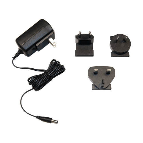 Four (4) interchangeable plugs as one (1) USA and three (3) international styles plugs are supplied with unit.