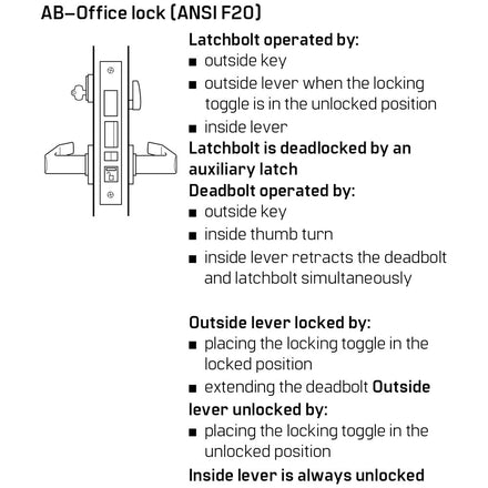 - ANSI Function: F20 – (AB) Entrance/Office