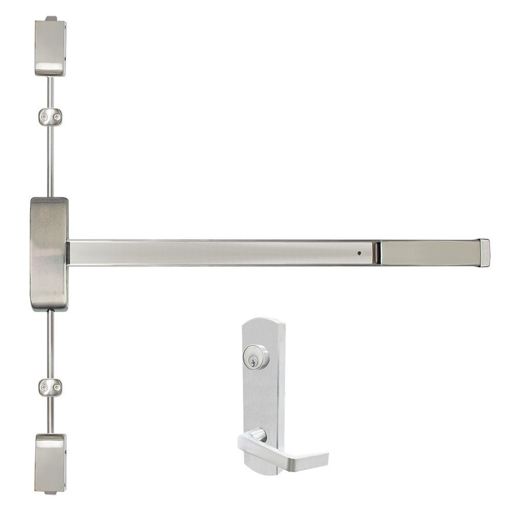 Cal-Royal A9860V/AF9860V x NESC9805 Surface Vertical Rod Exit Device with Escutcheon Storeroom Lever Trim, Heavy Duty Grade-1