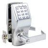 Function: Latch bolt operated by lever from either side, except outside has to enter a pre-programmed code in the keypad in order to retract the latch upon turning the lever. Key overrides the use of the keypad.