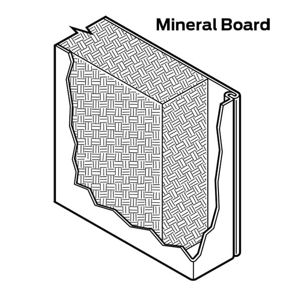 - Mineral board core - 250°F (121°C) Temperature Rise rating or 450°C (232°C) at 30 minutes